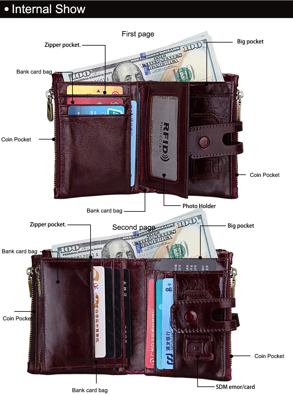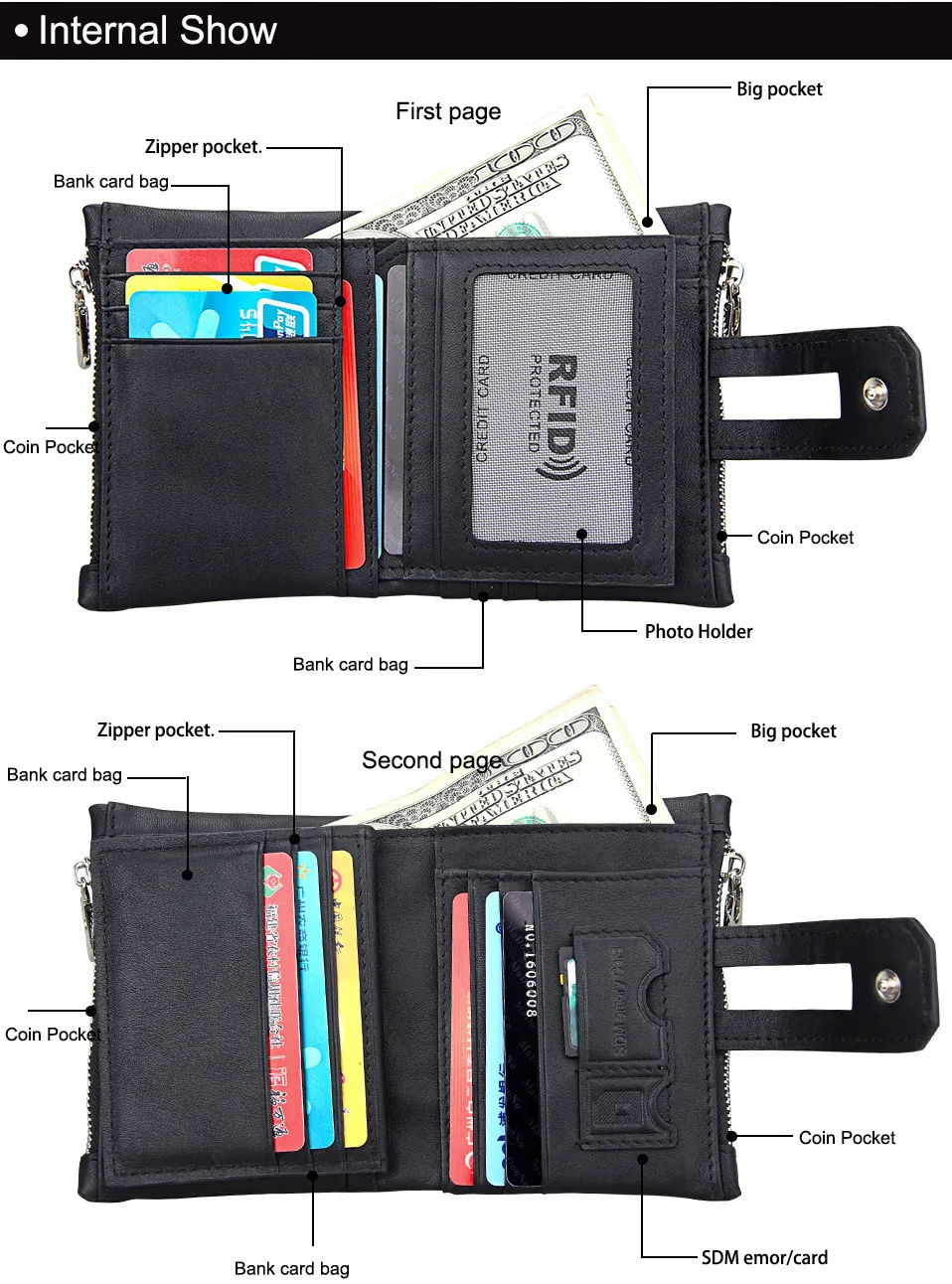 Внутренняя структура: держатель для карт, паспорт, карман для монет,