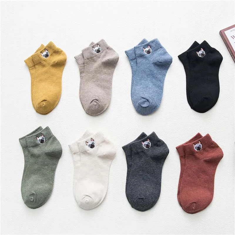 Skarpetki Harajuku/носки по щиколотку милые забавные носки с вышивкой мопса женские носки ручной работы Sokken Kawaii Chaussette Femme