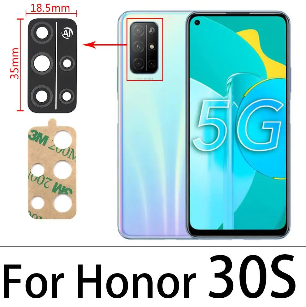 1 шт./лот, стеклянный объектив камеры с лентой для замены Huawei Honor 10 20 20S 30 30S X10 P30 Pro P40 Lite 1. Стекло задней камеры на клейкой основе