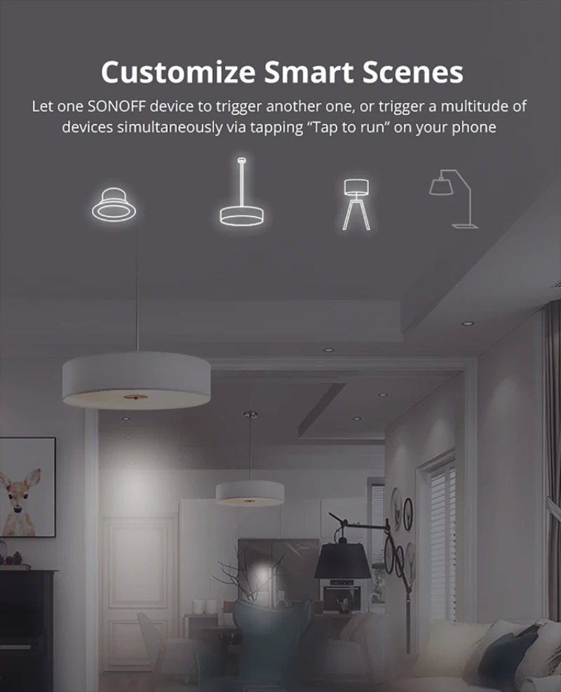 Создание смарт-сцен для запуска групп устройств SONOFF вкл/выкл с помощью нажатия на телефон.