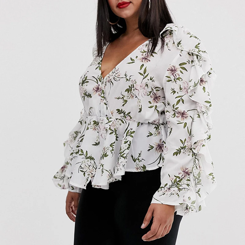 Женская рубашка Kissmilk белая Повседневная большого размера с рукавами воланами и