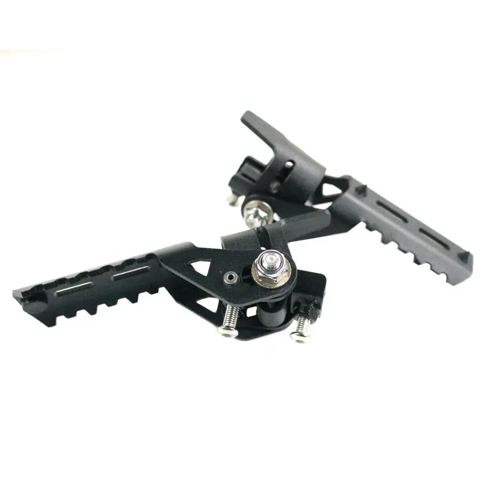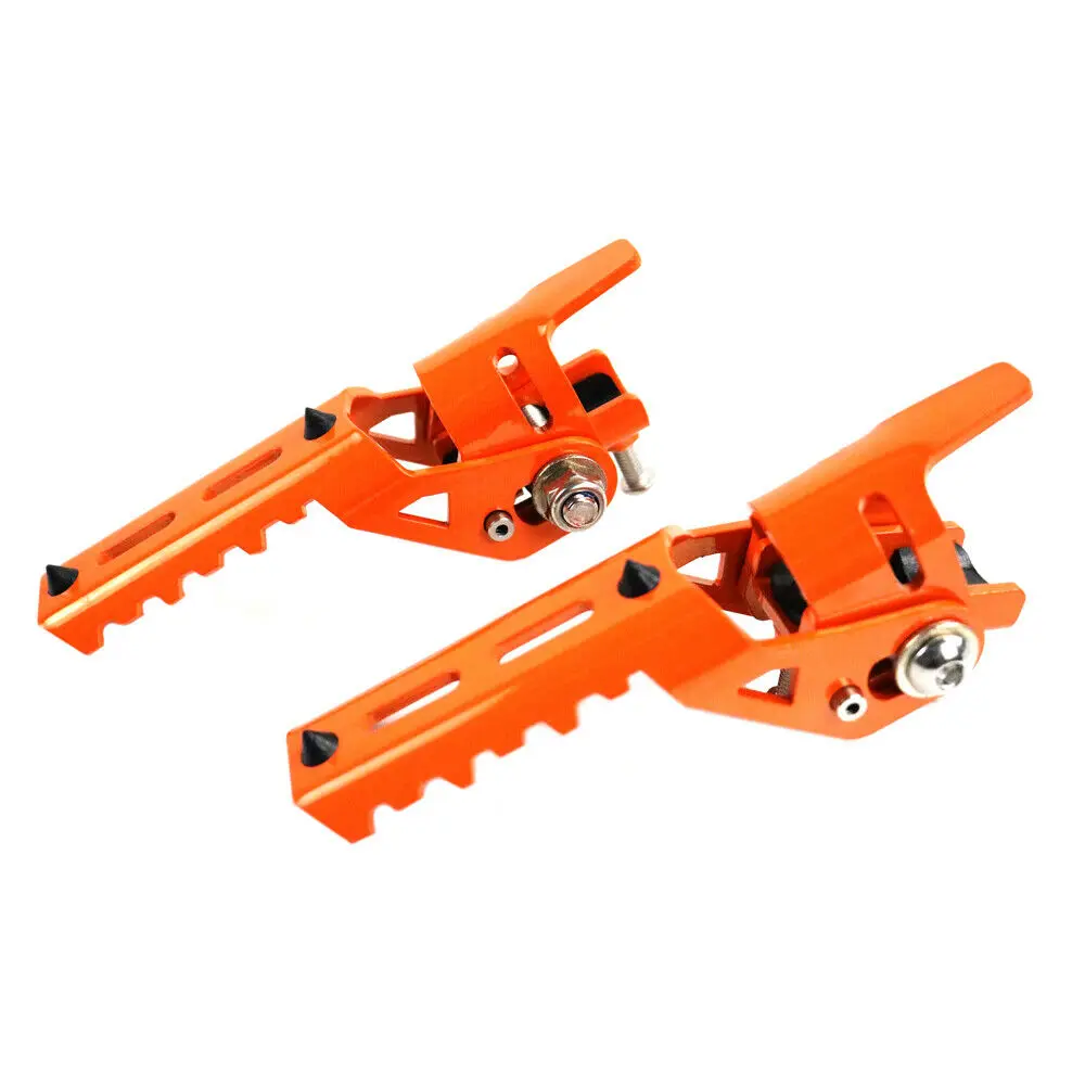 Шоссе колышки обеспечивают оптимальное сцепление даже для тяжелых сапог, благодаря их зубчатой поверхности, разработанной в enduro racing. Они складываются близко к трубе, занимая очень мало места-очевидное преимущество, если во время экскурсий по бездорожью все затягивается. Благодаря специальному механизму крепления, они являются идеальным аксессуаром на обтекателе Touratech для BMWДляR 1200 GS-W