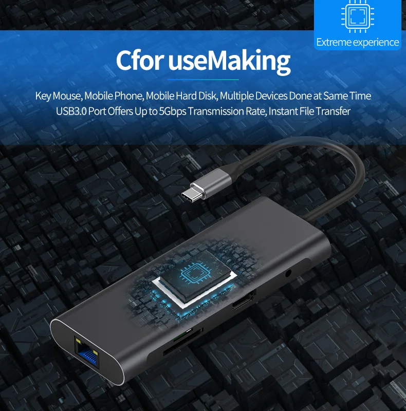 Пожалуйста, обратите внимание: HDMI кабель, VGACable, RJ45Cable, SD/TF карта, SSD и т. Д., используются только в качестве полной функции продукта дисплея и не включены в посылка. Только usb-хаб в посылка Различные модели имеют различный интерфейс и внешний вид, пожалуйста, выберите подходящую модель перед покупкой: (1) концентратор 1201 : 12-в-1: Поддержка МТС, Мульти-сенсорный экран расхождений в настройках экрана 2 * HDMI + VGA + RJ45 + SD/TF + 3 * USB3.0 + USC-C(Type-C)+ 3,5 мм аудио + PD (HDMI и VGA не могут быть использованы в одно и то же время) USB-C рот 。 материал: алюминиевый сплав + акриловое стекло (2) концентратор 1001 : 10-в-1: HDMI + VGA + RJ45 + SD/TF + 3 * USB3.0 + 3,5 мм аудио + PD (HDMI и VGA не могут быть использованы в одно и то же время) USB-C рот (3) концентратор 901 : 9-в-1: HDMI + RJ45 + SD/TF + 3 * USB3.0 + 3,5 мм аудио + PD USB-C рот (4) Втулка 701 : 7-в-1: HDMI + SD/TF + 3 * USB3.0 + PD USB-C ртом (5) концентратор 601 : 6-в-1: HDMI + 2 * USB3.0 + SD/TF + PD + NGFF SATA 2280 USB-C рот Этот продукт поддерживает один NGFF SATA SSD. Размер 2280, максимальная емкость 2 ТБ (6) концентратор 401-HDMI: 4-в-1: HDMI + USB3.0 + PD + VGA USB-C ртом (7) концентратор 301: «3 в 1»: 1 * PD 1 * HDMI 1 * USB 3,0 USB-C рот (8) концентратор 401 : 4-в-1: 4 * USB 3,0 USB-C рот Поддержка HDMI 4K 30 Гц, поддержка VGA 1080P,PD Зарядка: поддерживает максимум 87 Вт. Важное замечание -При подключении к ноутбуку Не поддерживайте зарядку мобильного телефона через USB-A или USB-C женский порт из-за ограниченного тока. -Пожалуйста, предоставьте источник питания при подключении к энергоемким устройствам; Поддержка подключения только 1 HDD/SSD одновременно. -Чтобы предотвратить помехи Wi-Fi, вы можете обернуть корпус линии рядом с портом type-c фольгой или с помощью маршрутизатора частоты 5 ГГц. Кроме того, При неиспользовании отключите ethernet-кабель и PD зарядный кабель от адаптера. -Для Samsung Galaxy S10/S9/S8/Note9/8, он совместим с режимом Dex через концентратор, версия телефонной системы требует Android 9,0 или выше. -Для ноутбуков Xiaomi мы предлагаем подключение к неоригинальному адаптеру питания PD, например, к адаптеру питания Apple, Dell для обеспечения нормального использования.