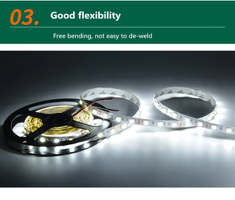 1. Высокая яркость 2835 SMD светодиодный, высокая интенсивность и надежность. 2. Длительный срок службы 50 000 часов 3. Непрерывная длина, упакована в 0,5-10 метров. 4. Гибкая лента для сгибания изгибов 5. Полностью гладкий и ровный светильник, устраняющий неровную световую проблему 6. Ультра-яркий, но работает при низкой температуре 7. Низкий расход энергии