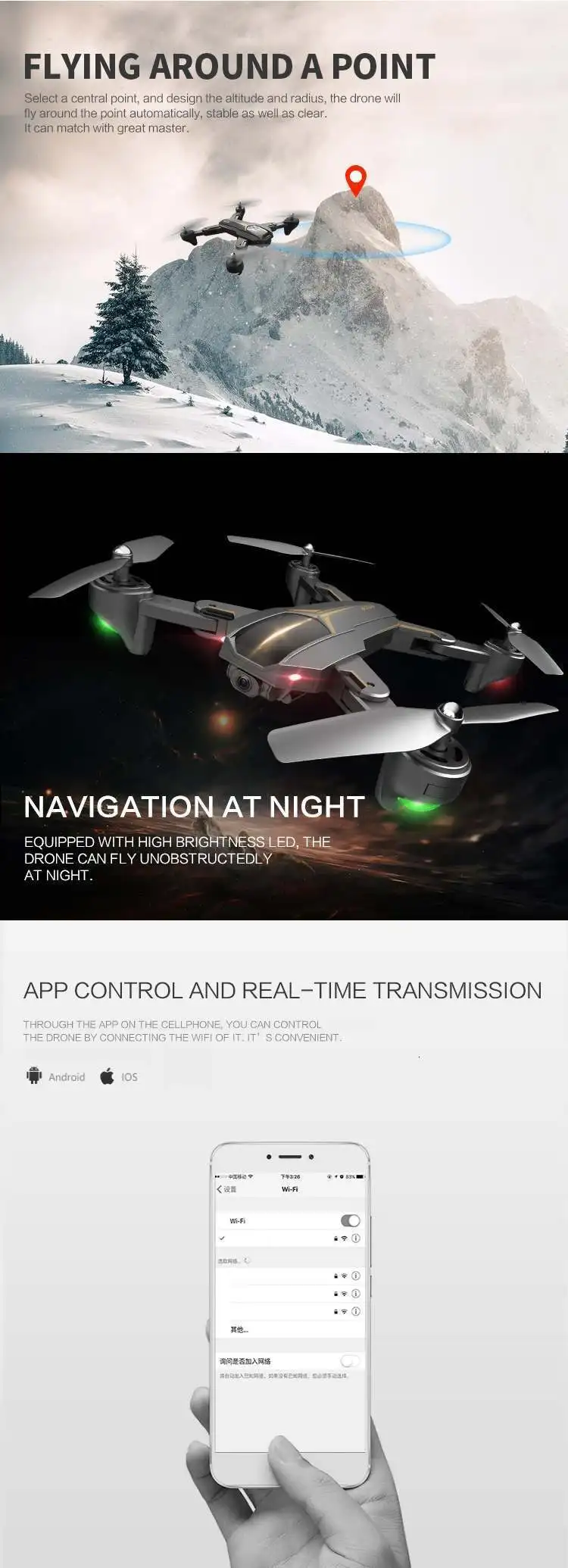 Функция: GPS, 5G WiFi FPV, 2MP/5MP HD камера, режим удержания высоты, Безголовый режим, автоматическое возвращение одной кнопкой, вверх/вниз, вперед/назад, поворот влево/вправо, боковой f светильник, светодиодный светильник