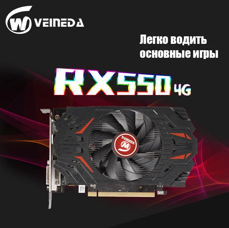 Видеокарты VEINIDA Radeon RX550 4 ГБ GDDR5 128 бит PCI Express 3,0 DirectX12 для видеокарт Amd Rx550