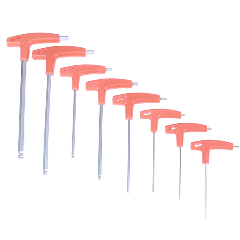 -Водители шестигранных/шестигранных ключей с Т-образной ручкой-двойной конец: короткий конец имеет прямой шестигранный для большего крутящего момента; Длинный конец имеет шаровой конец для использования под углом до 30 градусов