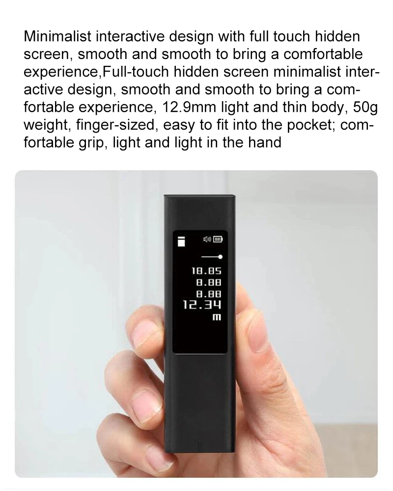 Название продукта:Duke LS5Лазерный дальномерМатериал корпуса: алюминиевый сплав + ПКВнешний вид: тонкая полировка + матовая пескоструйная обработкаРазмер: 95*26,5*13 ммВес: 38 гМаксимальное лазерное измерение расстояния: 40 метровПогрешность в диапазоне лазера: ± 2 ммЕмкость аккумулятора: 280ма/1.04WhМетод зарядки: 5 в <2A