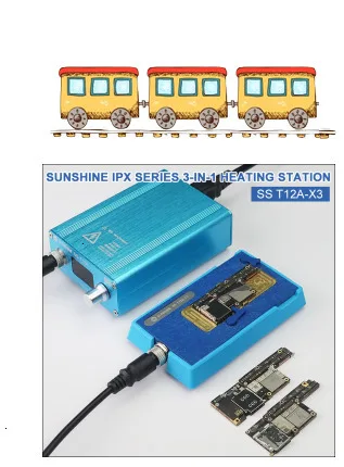 T12A-X3 паяльная станция комплект материнская плата ремонтный инструмент для iPhone 6 7 8 X XS MAX мобильный телефон процессор NAND Отопление разборка Platfo SUNSHINE IPX Series 3-в-1 нагревательный стол 1. Подходит для ремонта материнской платы IP X/XS MAX, демонтажа нагрева, процессора и других компонентов для нагрева клея 2. Силиконовая изоляция, высокая термостойкость, понижение температуры нижней контактной поверхности. 3. Медь высокой чистоты используется в качестве пленки для обеспечения равномерной теплопередачи и тепла. | |