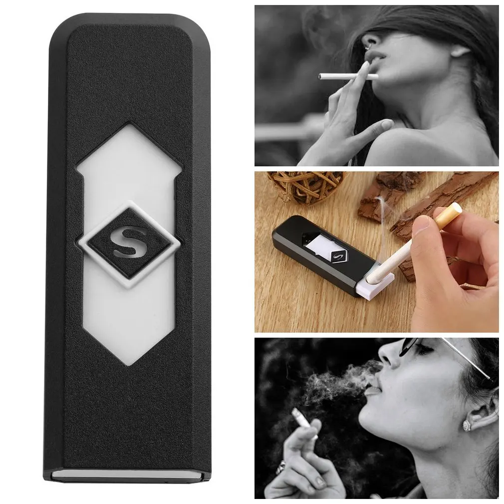 Portable USB Electronic Rechargeable Battery No Gas Flameless Cigar Cigarette Lighter Windproof Silent Gadget Case
