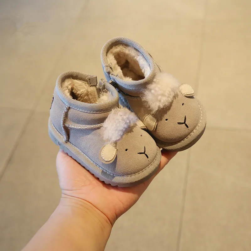Зимняя распродажа; Замшевые зимние ботинки для детей; Носки для малышей; С мультипликационным рисунком животного, одежда на Хлопчатобумажной Подкладке для детей, обувь из толстого плюша, сплошной цвет