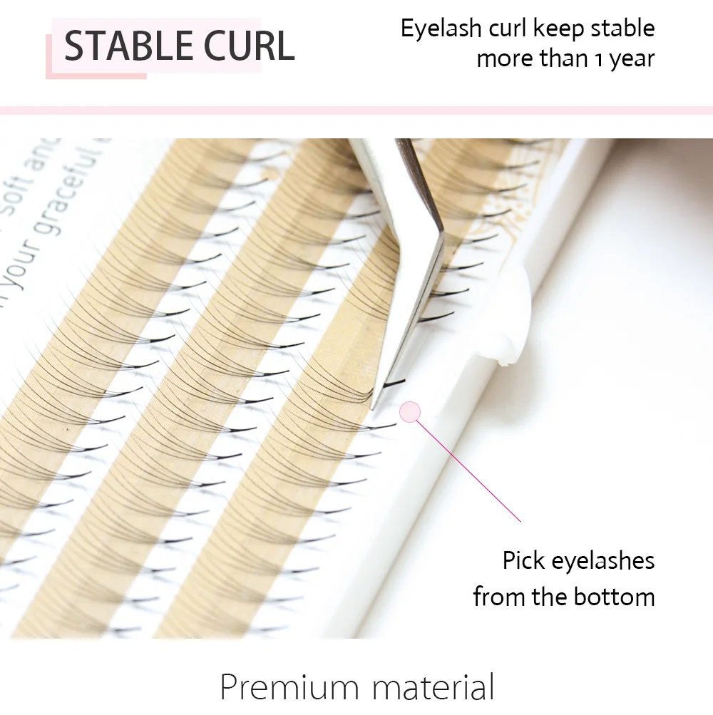 Корень одной пучки ресниц не расколется Может быть применен непосредственно после погружения в клей Экономия времени, даже дружественная к людям, которые не знаком с наращивание ресниц. Создает естественный эффект подводки за счет меньшего клея на корне. Отваливаются частично, а не вся связка.
