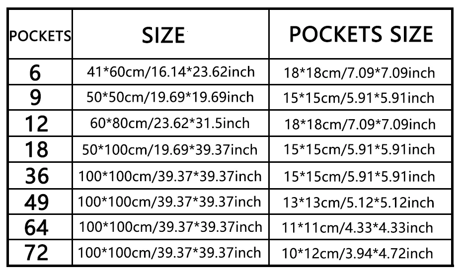 > Карманы: 9/12/18/36/49/64/72 карманов.