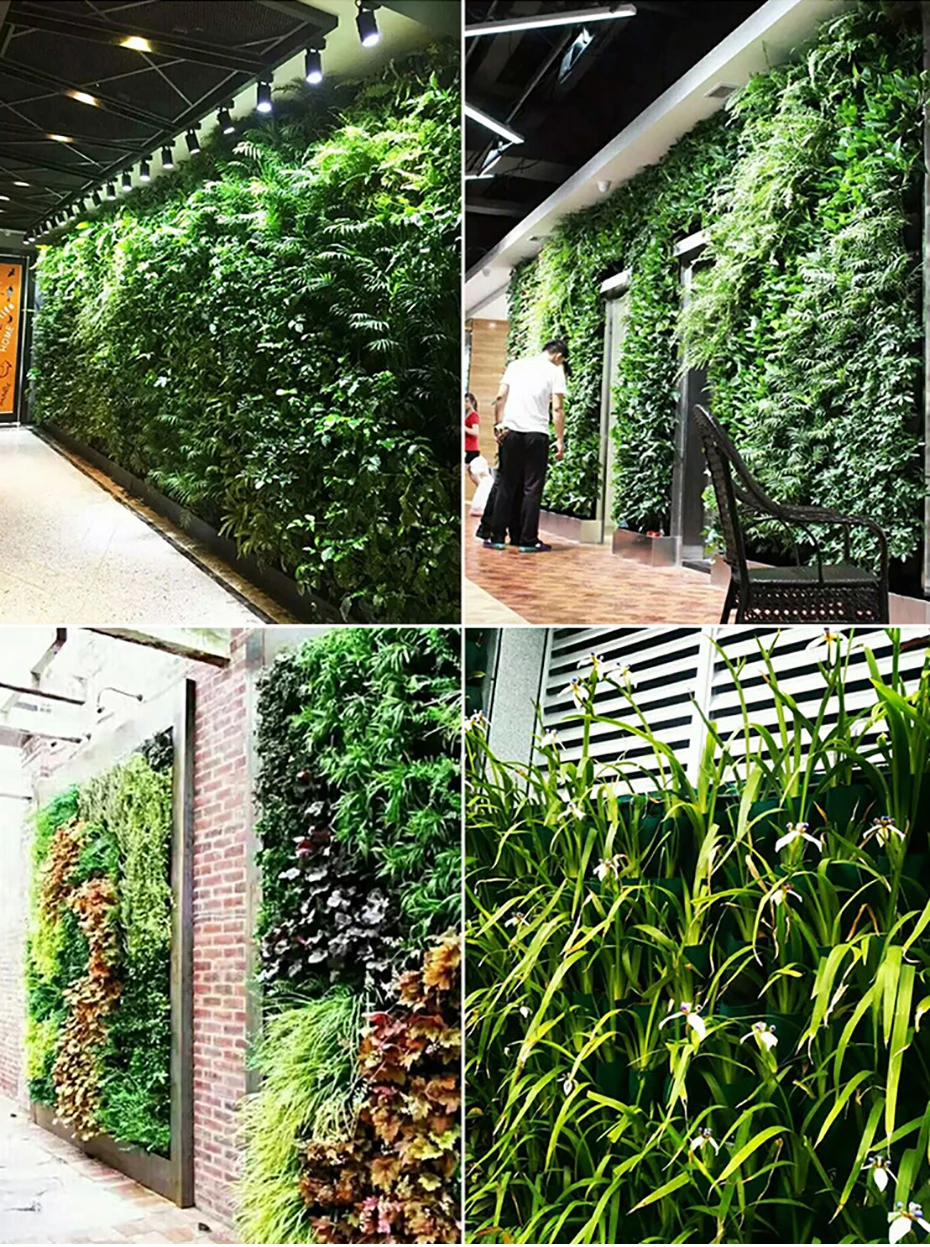 > Трехмерная растительная стена зеленых растений, может проектировать различные узоры, чтобы люди чувствовали себя комфортно.