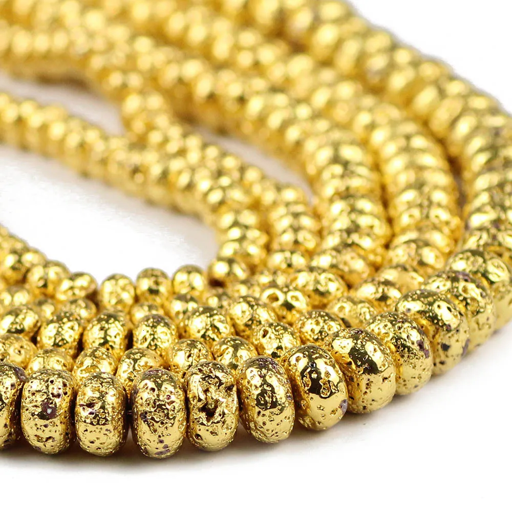 Золотой натуральный Лава камень 6/8/10 мм DIY вулканические плоские круглые бусины для ювелирных изделий Ожерелье Браслеты Аксессуары для изготовления