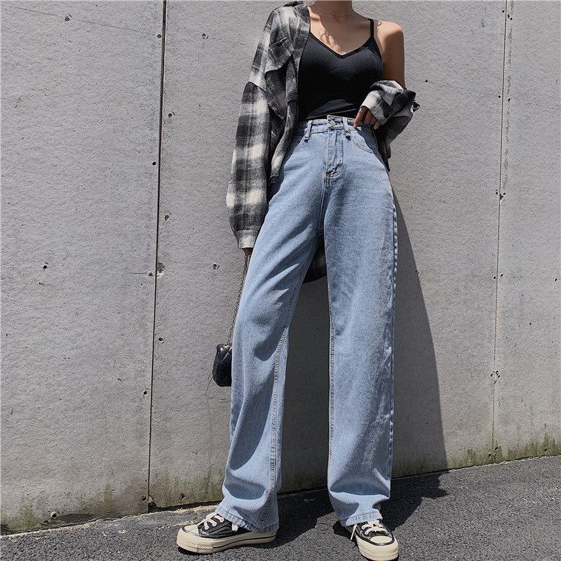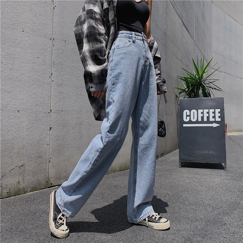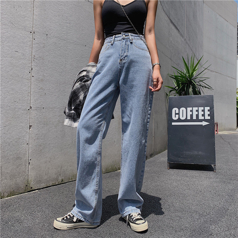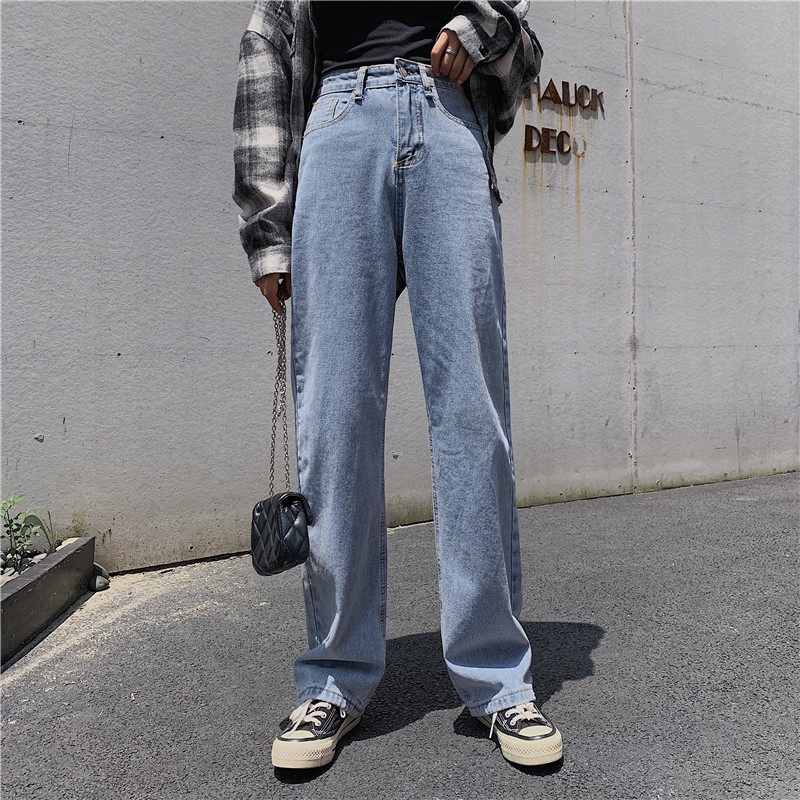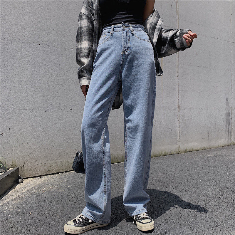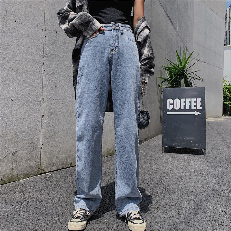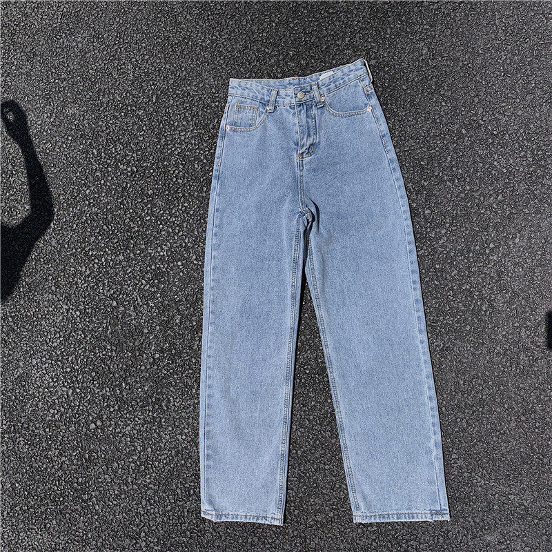 Женские джинсы с высокой талией S-XL, синие свободные прямые джинсы с высокой талией в Корейском стиле, 2019