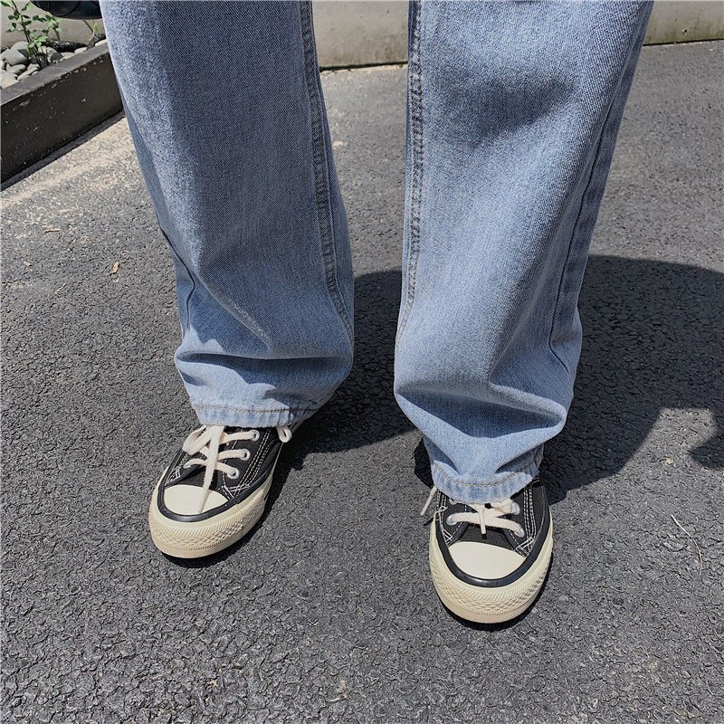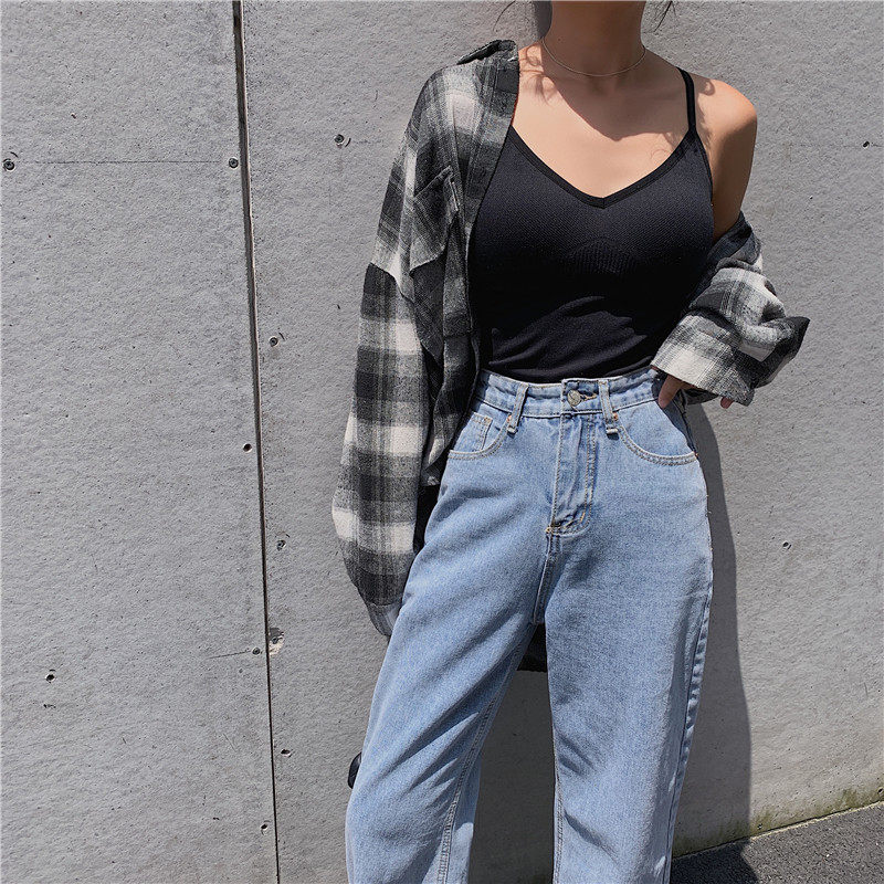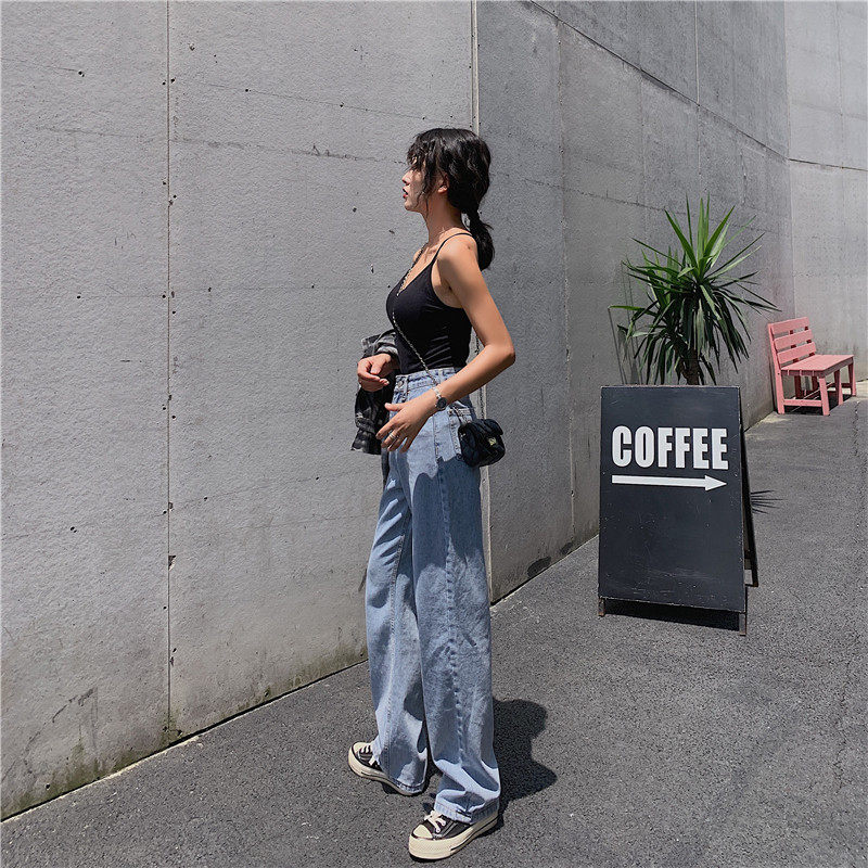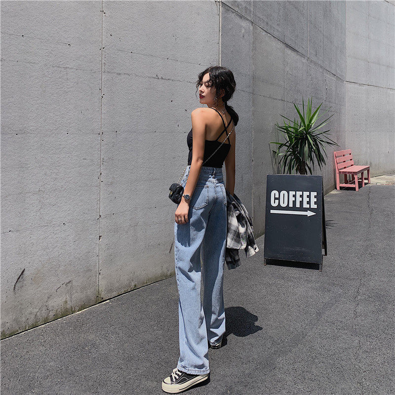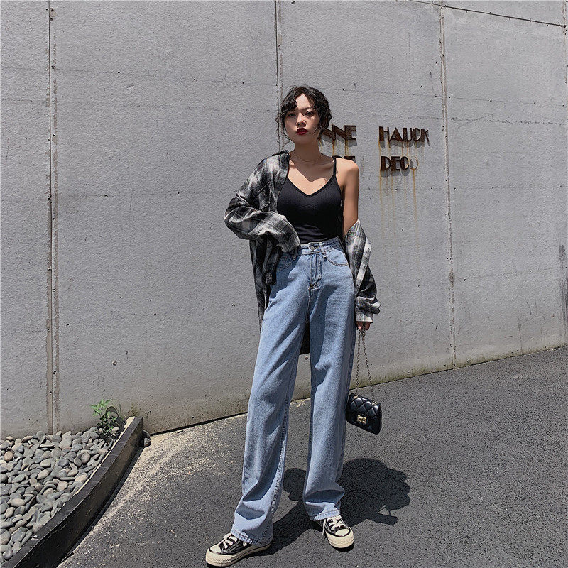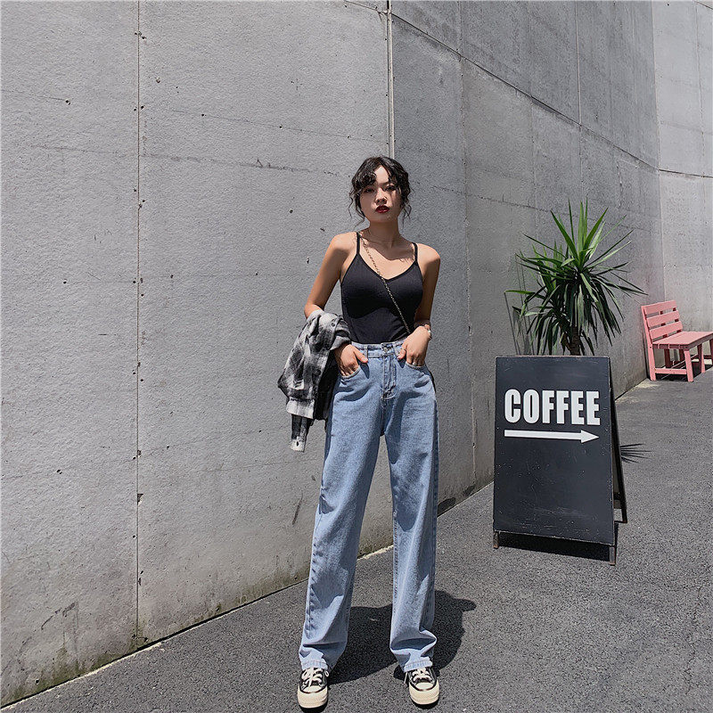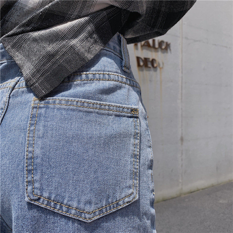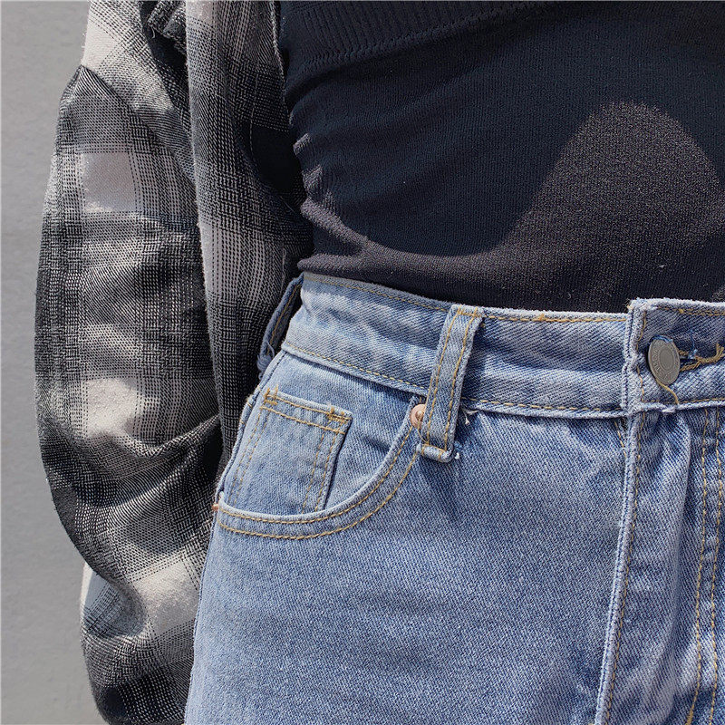 Женские джинсы с высокой талией S-XL, синие свободные прямые джинсы с высокой талией в Корейском стиле, 2019