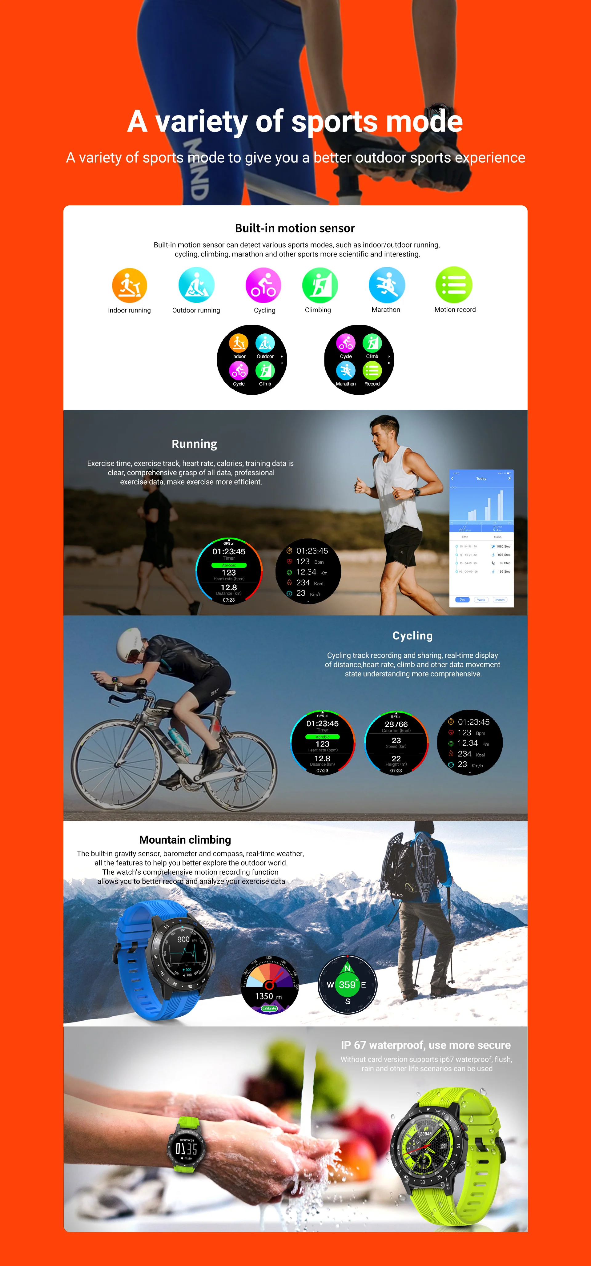7. Несколько спортивных циферблатов: предназначены для занятий спортом и дизайна циферблата, переключаются в любое время.