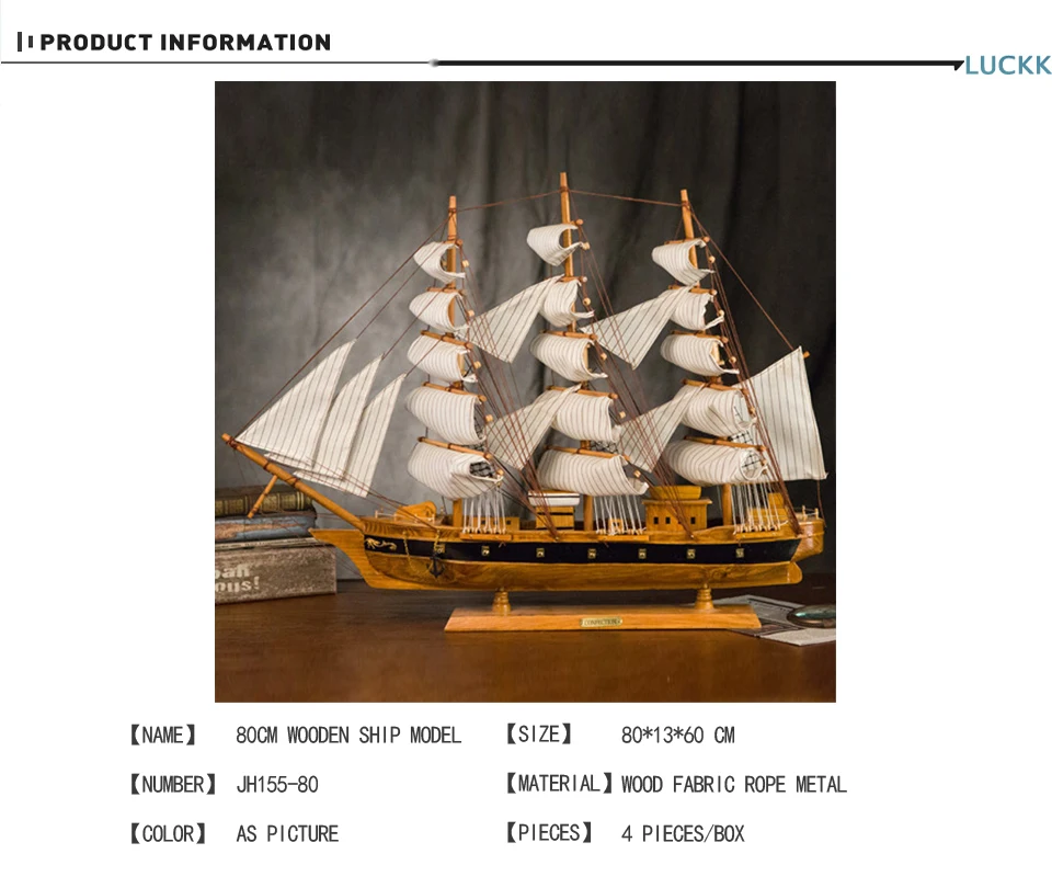 LUCKK 80 см деревянная модель в средиземноморском стиле, ретро Морской Декор, украшение для интерьера дома, дерево, ремесло, подарок на день рождения для детей