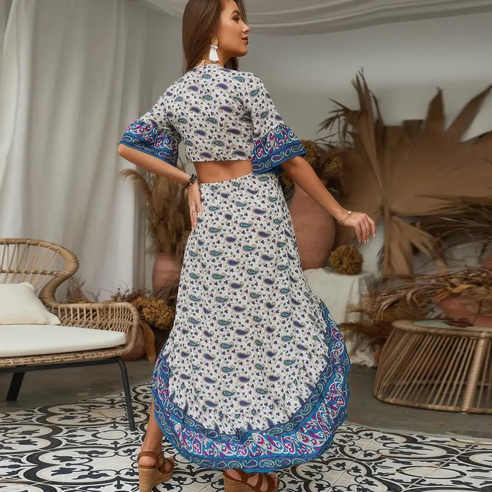 * Описание товара: женское летнее длинное пляжное платье с глубоким v-образным вырезом и цветочным принтом Boho