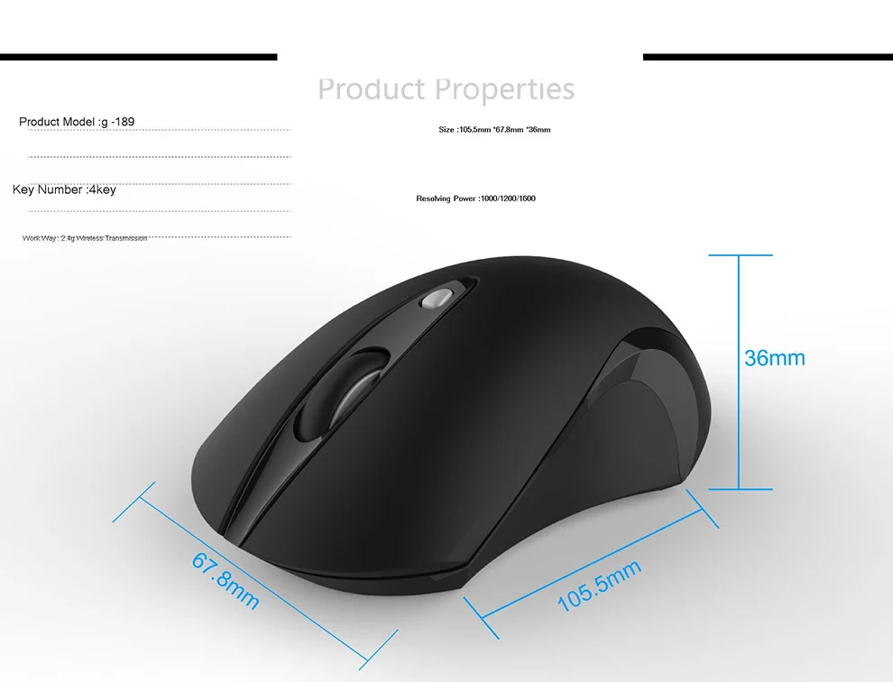 | 1. Эргономичный дизайн формы, удобный на ощупь, регулировка DPI, 800/1200/1600, две подходящие офисные игры | |