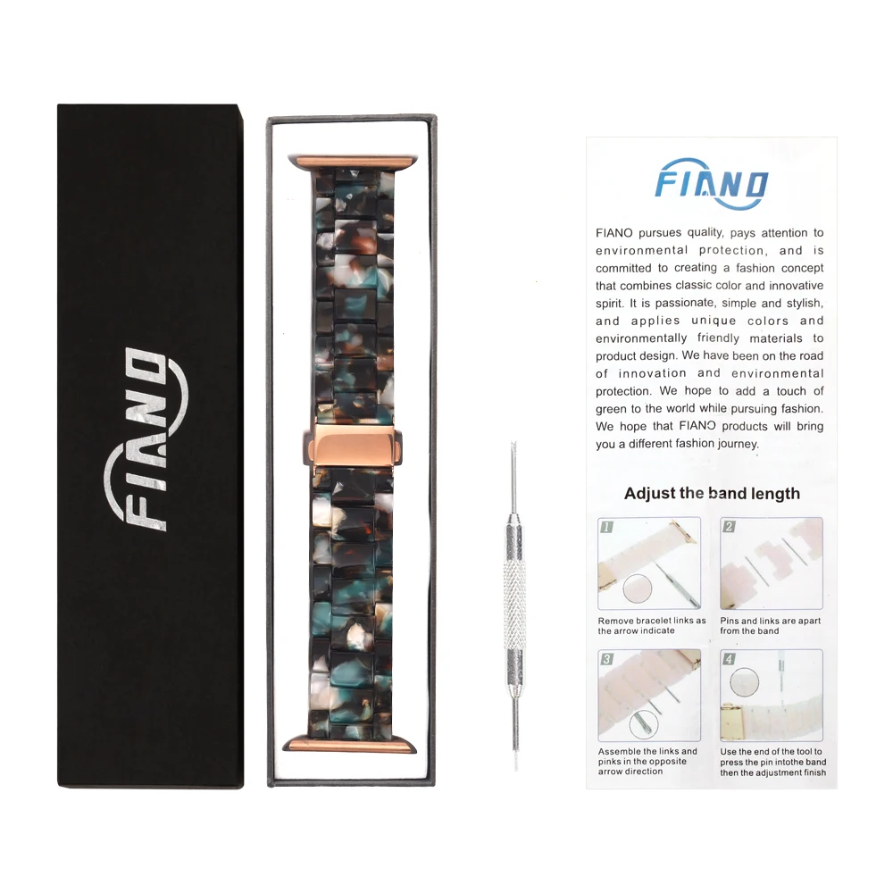 【Легко носить и регулировать этот ремешок для apple watch из смолы разработан с двойной раскладной застежкой из нержавеющей стали, которую легко надевать и снимать. Браслет поставляется с инструментом для удаления, что позволяет регулировать длину ремешка, чтобы соответствовать вашему запястью.