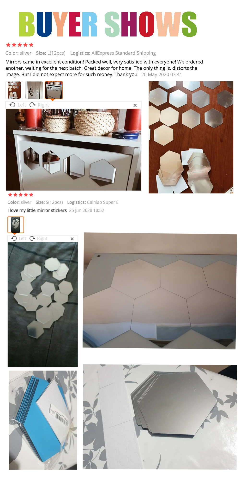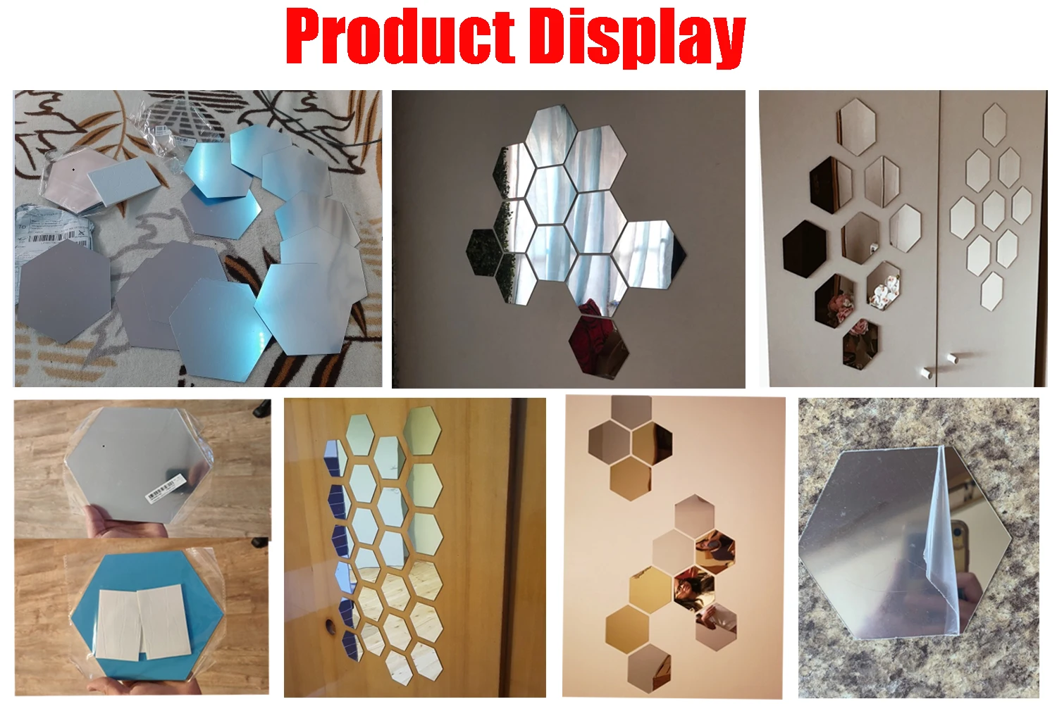 Посылка включает в себя: 1 Набор геометрических шестигранных зеркальных настенных наклеек