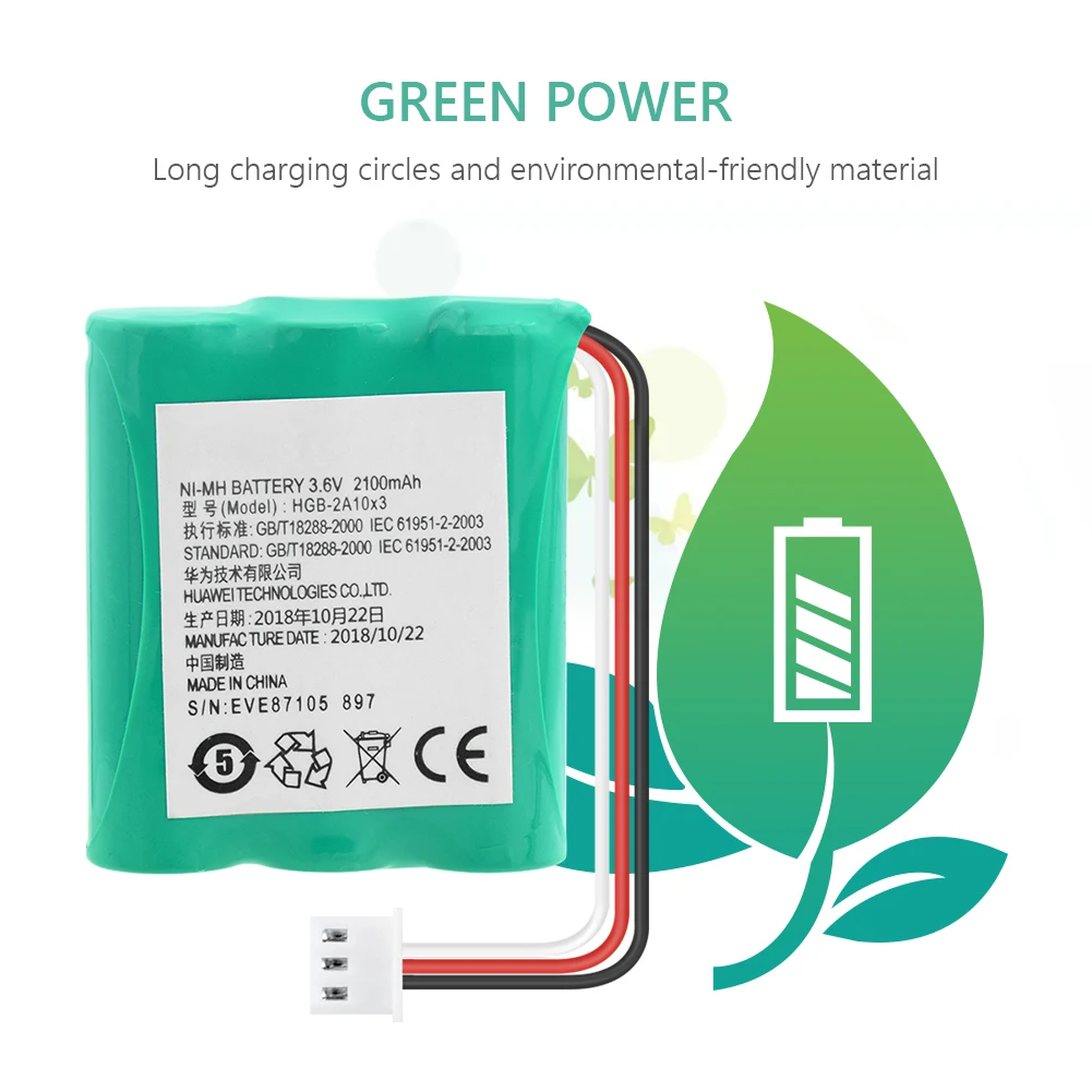 Особенности 100% Новинка! Высокое качество3,6 V никель-металл-гидридных или никельБеспроводной телефонAA аккумулятор, группа батарей. Защита от перенапряжения, перегрузки по току, перезарядки и короткого замыкания батареи с лучшей длиной провода для пространства. Безопасные и надежные, Премиум экологически чистые аккумуляторные батареи с высокотемпературной ПВХ-оболочкой, без токсичных отходов. Высокая плотность энергии, имеет дополнительный длительный срок службы для всех устройств с питанием от батареи. Совместим с Huawei фиксированным беспроводным телефоном, роутер стационарный телефон: 515H ETS2022 ETS2222 ETS2222 + ETS2252 ETS3023 ETS3125 ETS3125i ETS3253 ETS5623 E5172 E5172s-515, F201 ft2125 ETS3125i 20vw SU2028 Замена оригинальной части батареи номер: BTR2260B / HGB-15AAx3 / HGB-2A10 / HGB-2A10x3 Технические характеристики Модель аккумулятора: HGB-2A10x3(BTR2260B / HGB-15AAx3 / HGB-2A10) Химия: Ni-MH Тип ячеек: AA Количество ячеек: 3 шт. Номинальное напряжение: 3,6 V Емкость: 2100 мАч Тип соединителя: XH-3PinШтепсельная Вилка Перезаряжаемый: до 1000 циклов Вес нетто: около 54 г/1,90 унций Размер: около 50,3x42. 3 мм/1,98x1,67" Внимание Не нужноПрокол, повреждение и разборка. Не нужноБросьте батарею в воду или огонь; Держите ее под сухими, тенистыми и прохладными обстоятельствами, когда не используете. Не нужноЗаряжайте аккумуляторы с нижними зарядными устройствами, чтобы избежать повреждения батарей. Если батарея излучает специфический запах, нагревание, искажение или появляется какое-либо несоответствие во время использования, хранения или зарядки, пожалуйста, извлеките его из устройства или зарядки и прекратите использование. Если соединитель и напряжение одинаковые, и батареи отличаются. Пожалуйста, не смешивайте их. Посылка в комплекте 1/2/4 x Аккумулятор