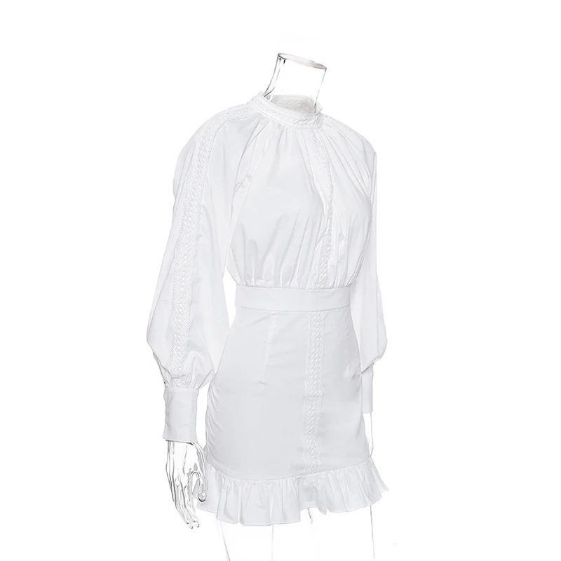Женское платье с открытой спиной souyonstar, белое элегантное платье с длинным рукавом и оборками на бедрах, 2019