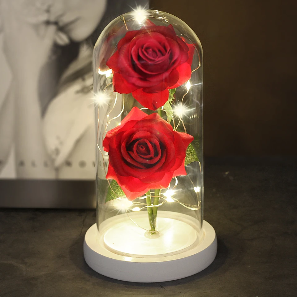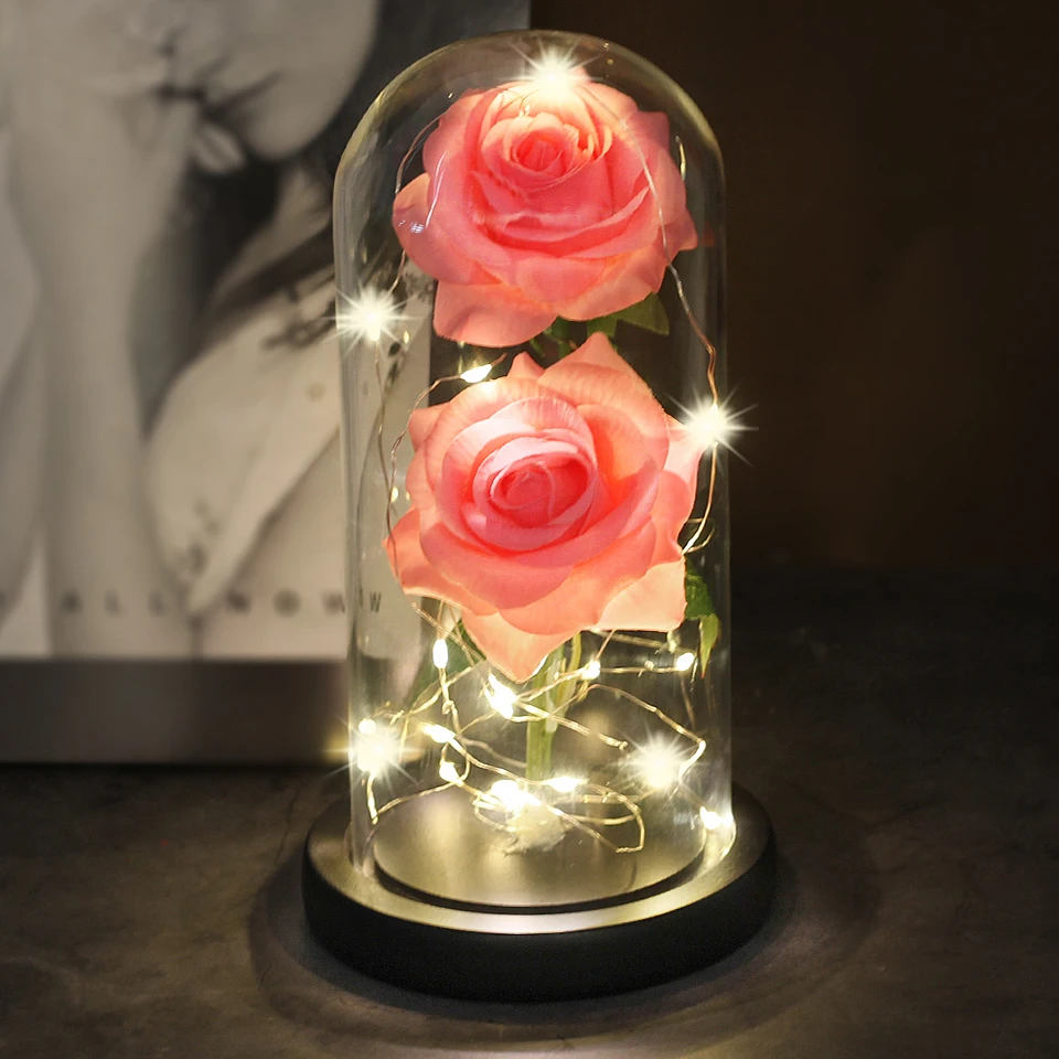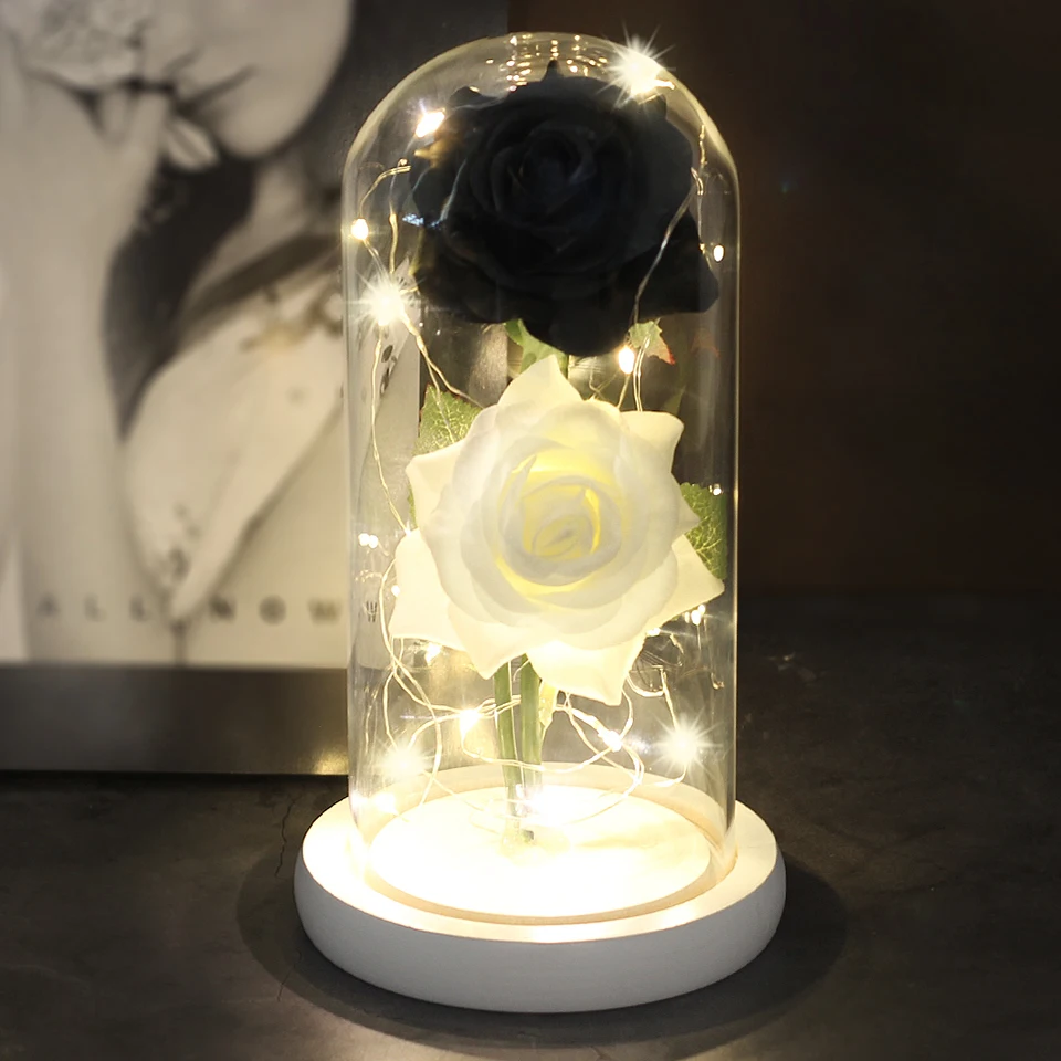 Дропшиппинг красота и чудовище красная роза в стеклянном Куполе С светодиодный светильник деревянная основа для подарка на День святого Валентина