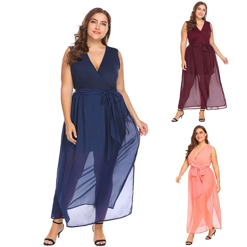 * Описание товара:Новое женское сексуальное Повседневное платье большого размера без рукавов с v-образным вырезом