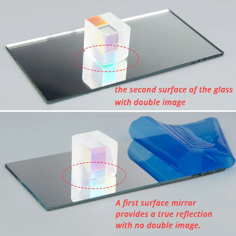 Особенности: Первое поверхностное зеркало, также известное как переднее поверхностное зеркало, оптическое зеркало класса, которое обеспечивает превосходное отражение для инженерных и научных применений. В отличие от стандартного зеркала, которое покрыто на второй поверхности стекла, первое поверхностное зеркало обеспечивает истинное отражение без двойного изображения.
