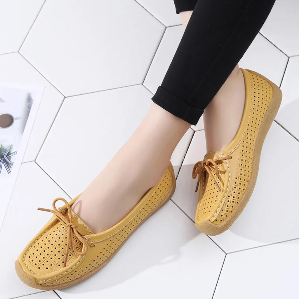 Женские удобные туфли с бантом, повседневные водонепроницаемые кроссовки с перфорацией, большие размеры