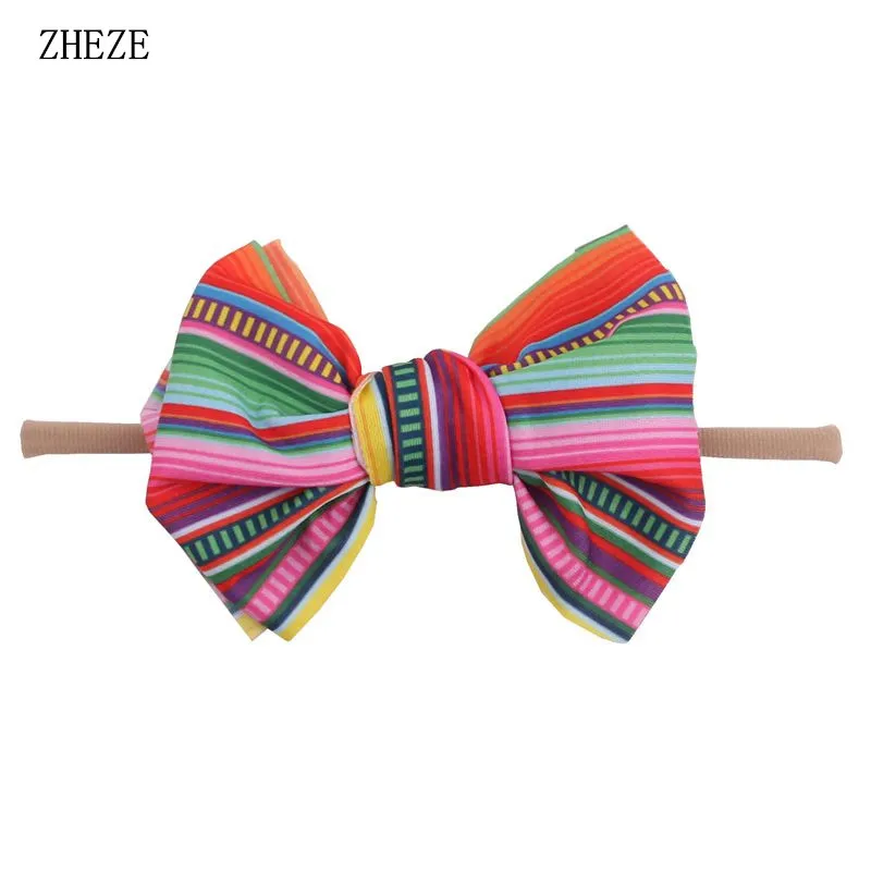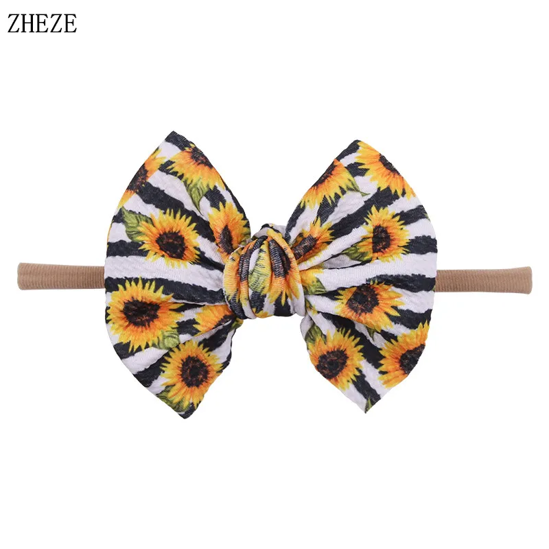 Комплект из 2 предметов, принт нейлоновая повязка на голову 2021 Новое поступление 4,5 ''банты волосов оголовье для девочек; Мягкая фактура; Эластичные детские Сделай Сам DIY бигуди для волос аксессуары для женщин