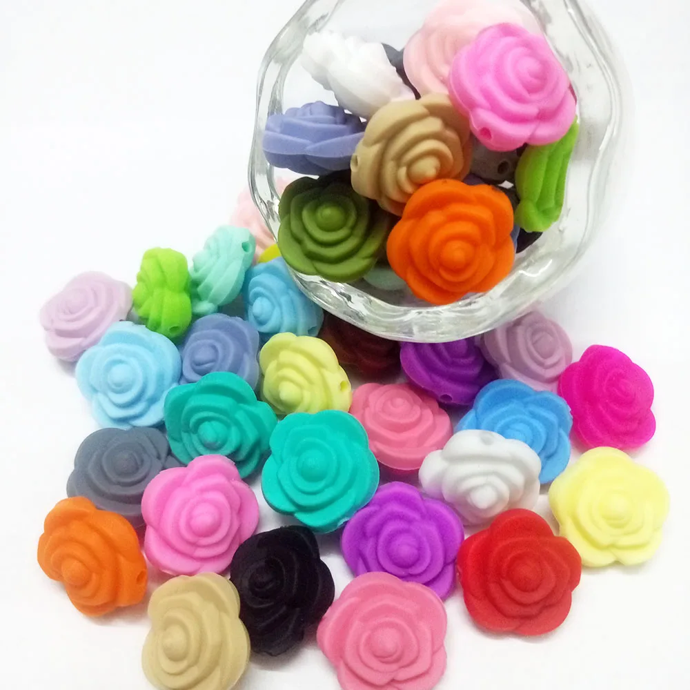 Joepada 20 шт./лот розовый детский Прорезыватель мини-цветок силиконовые бусины пищевого класса Силиконовые Прорезыватели для зубов для создания соски цепь игрушка