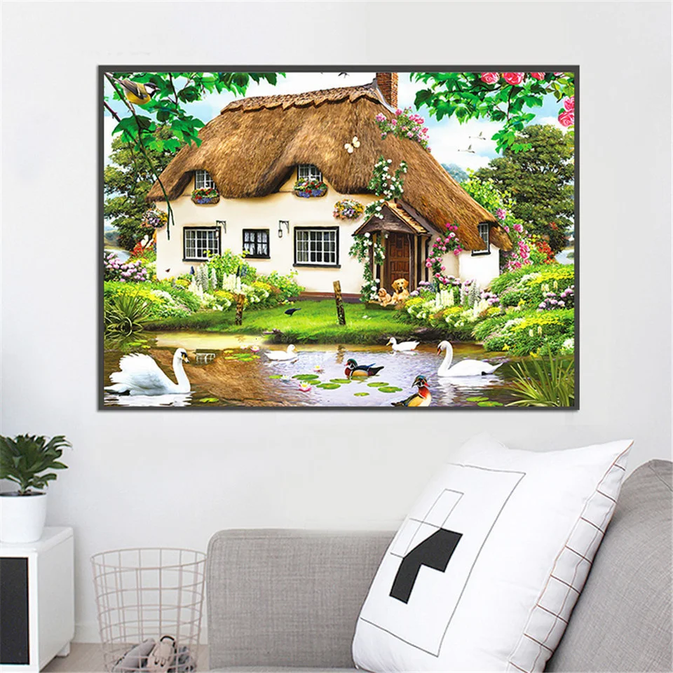 Название: AZQSD полная дрель Алмазная картина дом пейзаж Настенная картина Стразы подарок рукоделие ручной работы наборы крестиков Площадь сверла: 100% полностью квадратная Алмазная вышивка О оправе: Мы продаем бриллианты без рамки