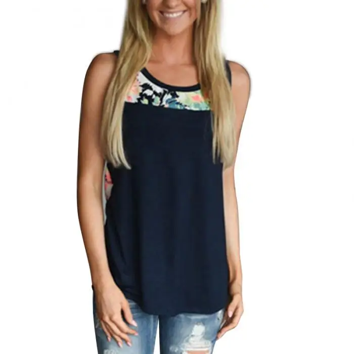 Женские топы без рукавов с цветочным принтом облегающие повседневные круглым
