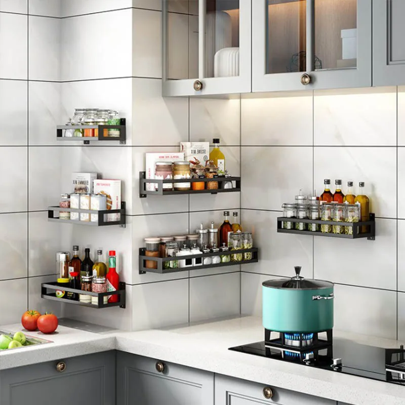 Кухонная полка из нержавеющей стали, полка для специй, черный держатель для приправ 20-50 см