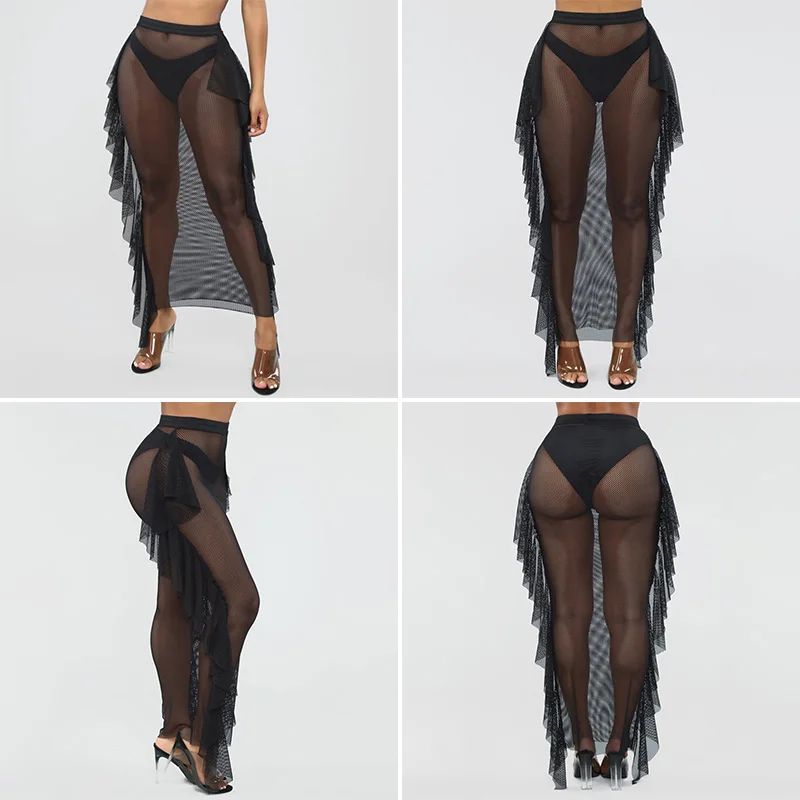 * Описание товара: женская, модная, сексуальная, перспективная, ажурная плиссированная, длинная юбка, плавки блузка