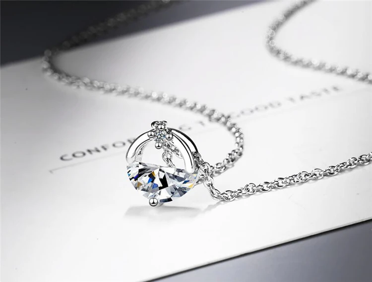 Модное круглое ожерелье из серебра 925 пробы с эмалью как лист морской синий цвет
