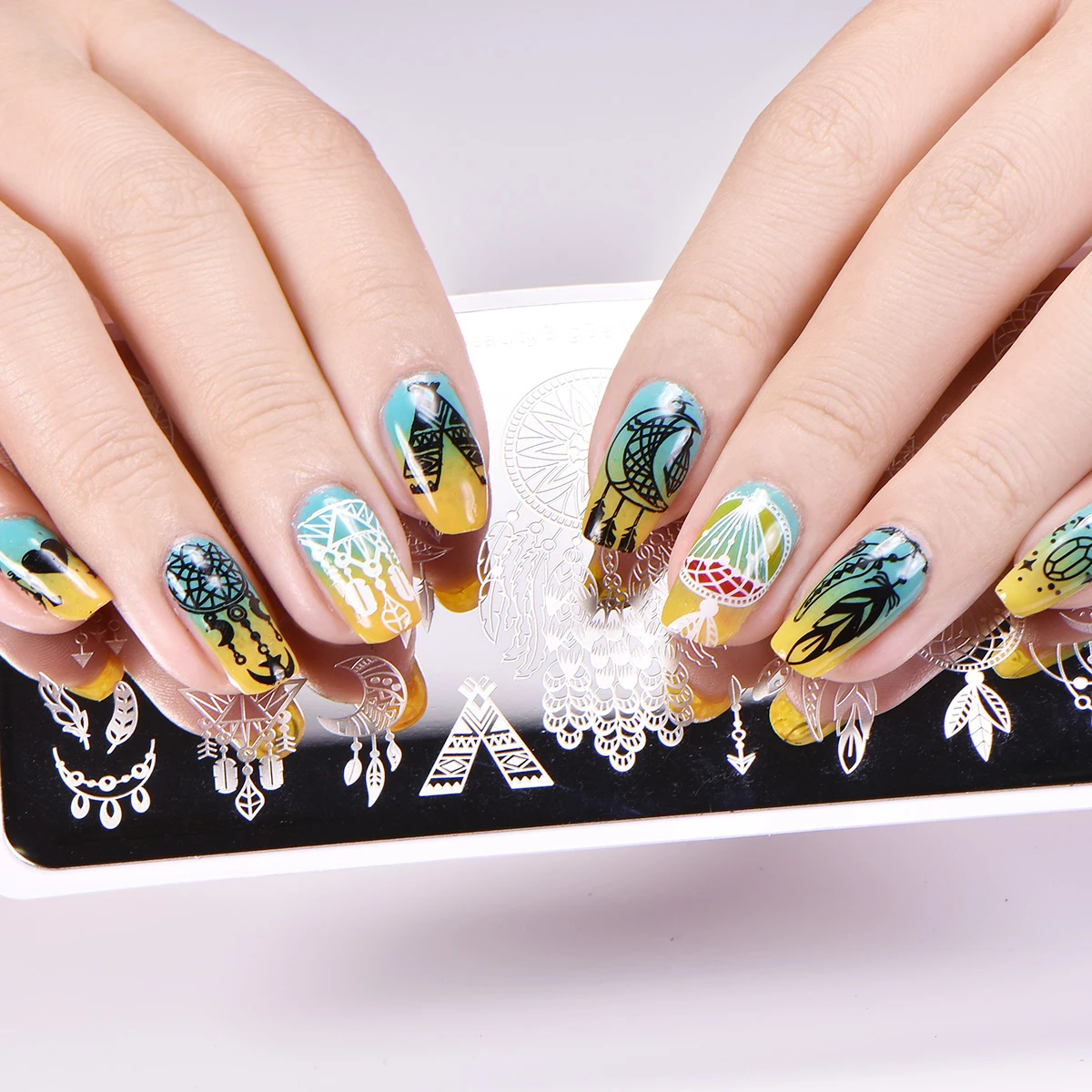 Размер: прибл. 6*12 см Посылка: 1 шт. BeautyBigBang пластина для стемпинга для нейл-арта Инструкции: Пластина защищена тонкой прозрачной защитной пленкой, пожалуйста, Снимите пленку перед использованием, чтобы лак для ногтей мог быть передан stamper. 1. Нанесите базовый слой или обычный лак на ноготь. 2. Нанесите лак для ногтей на желаемое изображение в пластине. (Рекомендуется: Используйте однотонный лак для ногтей, чтобы текстура была толще, чем другие лаки для ногтей) 3. Сделайте скребок наклоном на 45 градусов и быстро и сильно Отрежьте чрезмерный лак изнутри и снаружи. 4. Немедленно нажмите на стемпер с нежным подвижным движением, чтобы подобрать дизайн. Изображение переносится на штамп. 5. Наклейте изображение на ноготь с нежным подвижным движением. Изображение переносится на ваш ноготь. 6. Повторите вышеуказанные шаги для всех ваших ногтей. 7. После штамповки ногтей нанесите верхнее покрытие для длительного ношения.