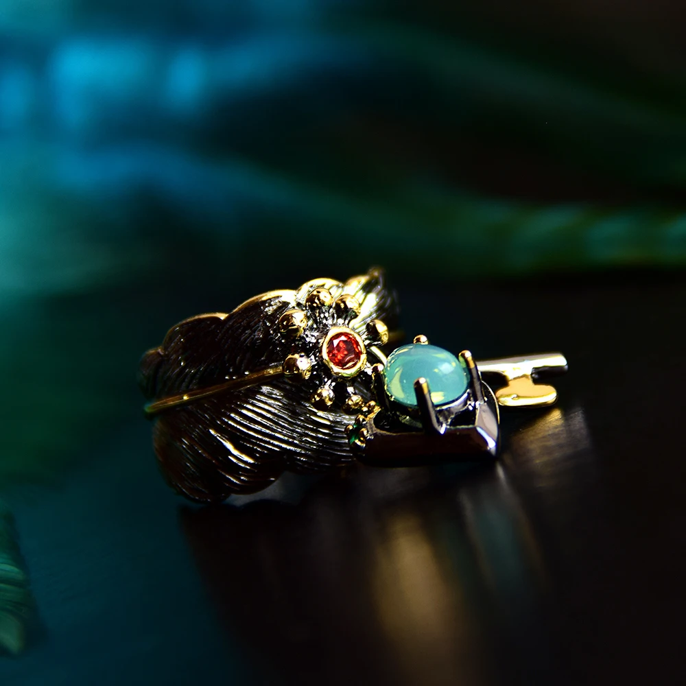 Изготовлен из окружающей среды металлической меди, черный + золотой 2 тона покрытие, вымощенный набор с Овальный зеленый Опаловый камень/зеленый + Сиам Фианит. -- Высокое качество -Быстрая доставка -- Хорошие ювелирные изделия ручной работы -- Не вызывает аллергии, не содержит никеля