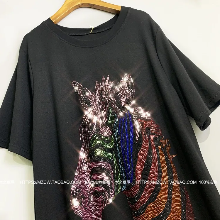 QING MO женское платье-футболка с принтом зебры и стразы, Летнее Платье До Колена