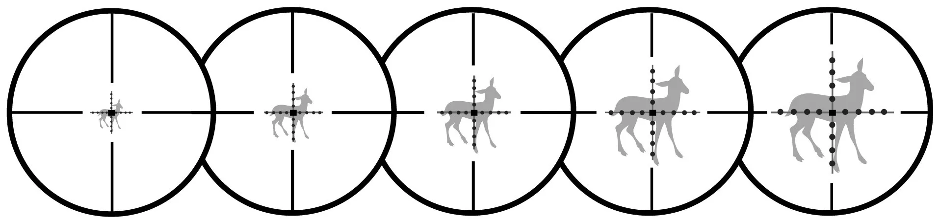 Преимущество телеметрических сеток (например, дальномер и Mil-dot и т. Д.) заключается в том, что целевое изображение и расстояние между точками остаются постоянными даже при смене увеличения. Именно эта система широко используется топ-поставщиками в настоящее время.