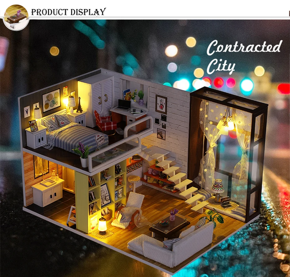 Вы получите: 1) Кукольный дом 2) Вся мебель такая же, как на изображении. 3) пылезащитный чехол и Подарочная коробка (если вы выберете вариант). 4) светодиодные фонари 5) инструкции по бумаге кукольный домик включает в себя кухню, ванную комнату, спальню, гостиную, бассейн, это модный Кукольный домик-лофт. Примечание: Кукольный дом не закончен, вам нужно собрать их вместе в следующей инструкции! Возраст: применяется более 10 лет клея/инструментов/батареи/Музыкальная Шкатулка/не включены в посылку ручные инструменты, необходимые: ножницы для бумаги, нож, производитель отверстий, точные пинцеты, отвертка. Размеры: Зарядка закончена кукольный домик Размеры: 26,5*19,6*16 см Материал: дерево, ткань, бумага, frp бак cмягчителя воды пластик, matel Функция: светодиодный огни в комплекте, место для музыкальной коробки (без музыкальной коробки, вы можете купить и собрать самостоятельно)