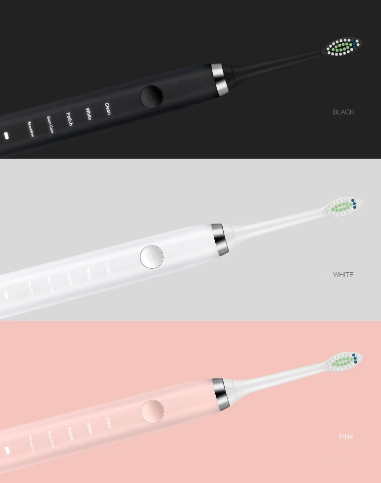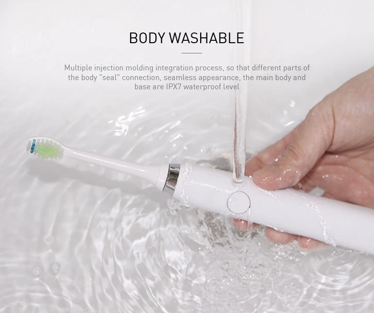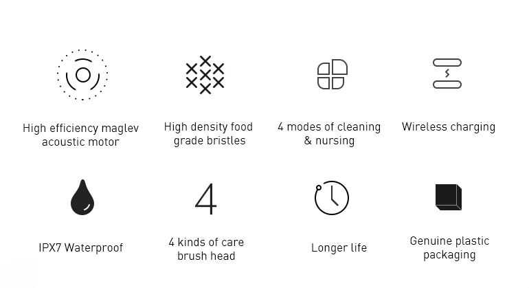 1. Магнитный Подвесной Двигатель, инновационная Очистка потока. 2. Пять режимов (чистый/полированный/белый/Gumcare/чувствительный) для различных групп людей. 3. 30 секунд напоминания, 2 минуты интеллектуального отключения. Поможет вам развить научное время чистки. 4. USB Индуктивная зарядка для более удобной зарядки в любом месте. 5. Две мягкие щетинки DuPont могут использоваться около полугода. 6. IPX 7 Водонепроницаемый можно мыть сразу после использования. 7. Время зарядки составляет около 12 часов, каждый раз, когда вы используете 2 минуты, каждое утро и вечер могут длиться в течение 30 дней.