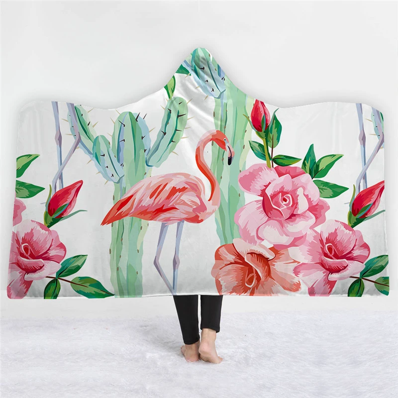 Новое домашнее одеяло с капюшоном и принтом фламинго, утепленное флисовое теплое покрывало для дивана и кровати, зимнее одеяло-накидка