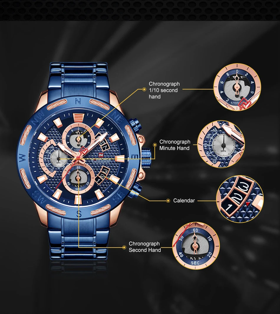 Многофункциональные три глаза шесть игл часы/Отображение даты и часов