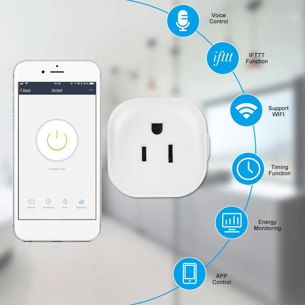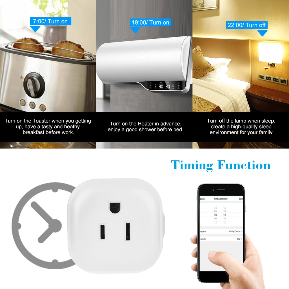 Эта умная розетка Wi-Fi имеет функции контроля энергии, синхронизации, кнопки включения/выключения большого размера, голосового управления и пульта дистанционного управления для телефона, вы можете установить расписание и таймеры, чтобы включить/выключить вашу электронику, просто нажав на ваш смартфон, который может сделать ваш дом умнее. Это отличный выбор для вас!