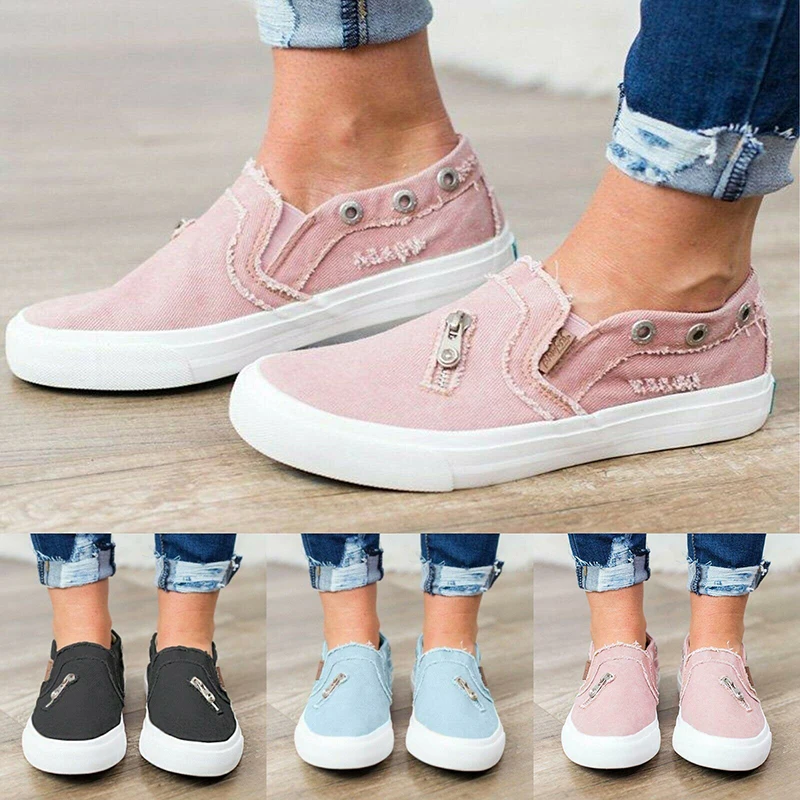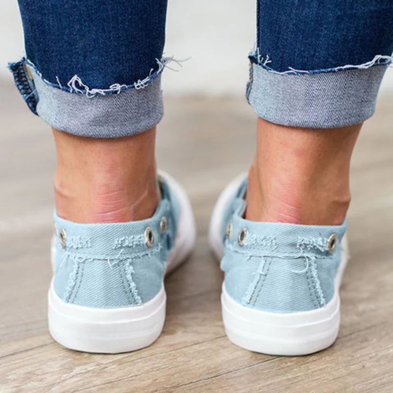 Женские джинсовые парусиновые лоферы; туфли-лодочки; повседневные кроссовки на плоской подошве без застежки; кроссовки